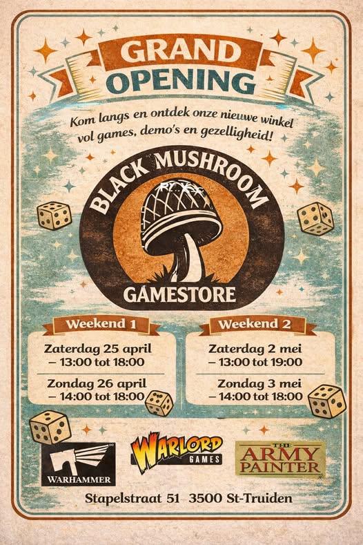 Goede vriend van de club Black Mushroom Workshop neemt de grote stap en opent in Sint Truiden een “brick and mortar” spellenwinkel. Tijdens de openingsweekends zullen onze leden erbij zijn met demo’s van spellen zoals Undaunted.